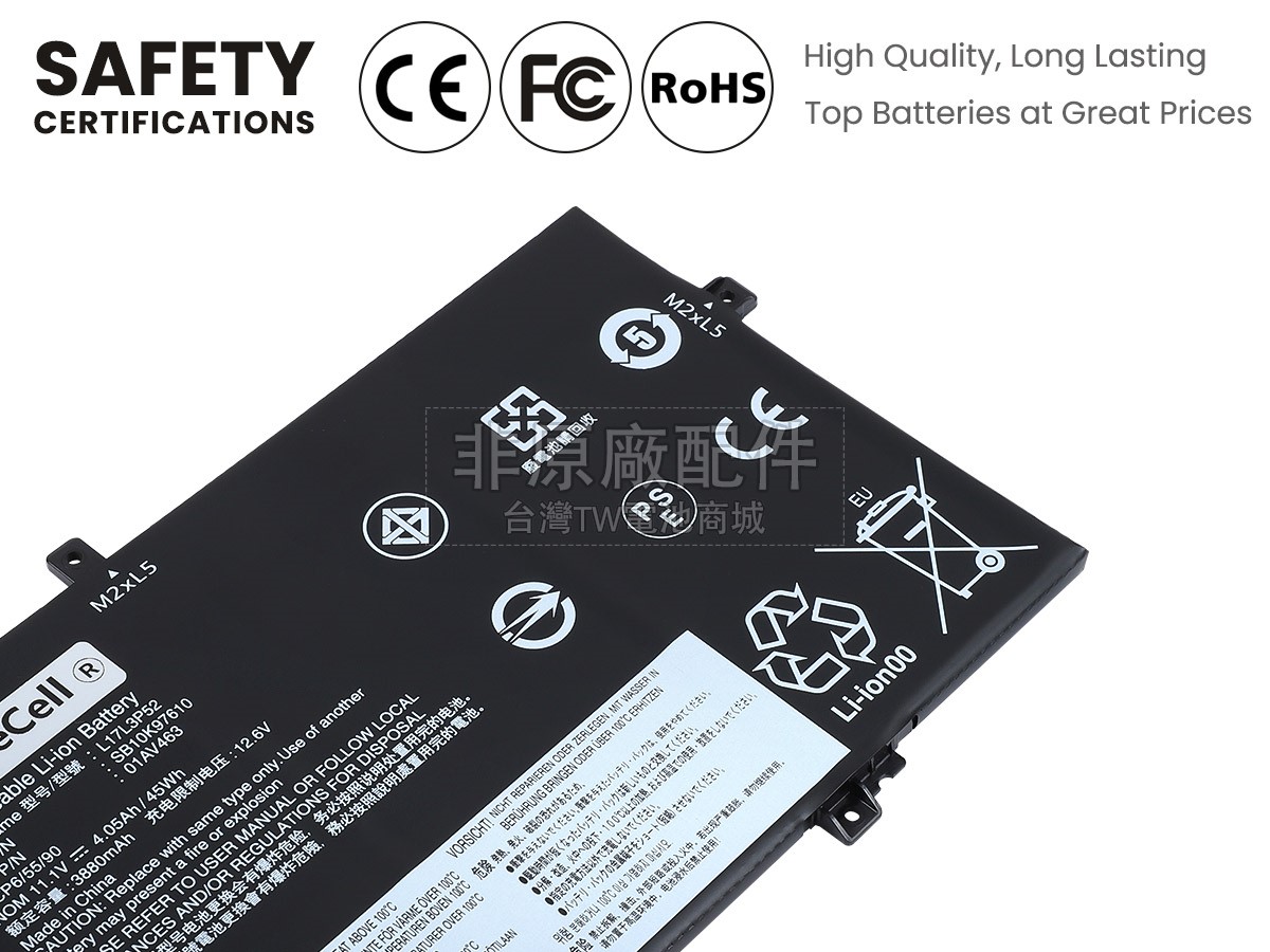 台灣TW電池商城售賣的所有電池均為100%真實容量,我們絕不會在參數上造假。對於製造商提供的每一款電池,我們都會安排技術人員進行參數測試,以確保我們售賣的電池都符合各種認證的要求、100%安全和100%兼容對應的筆記型電腦。極少數情況下,電池參數表上的容量會比電池實物圖上的容量低,這是因為我們檢測時發現製造商給出的電池容量偏高,與電池實際容量不符。於是我們會把電池的實際容量準確地填寫在參數表上,讓顧客直接看到電池的真實容量!這款Lenovo ThinkPad L14-20U1007NGR電池和原廠有什麼區別?