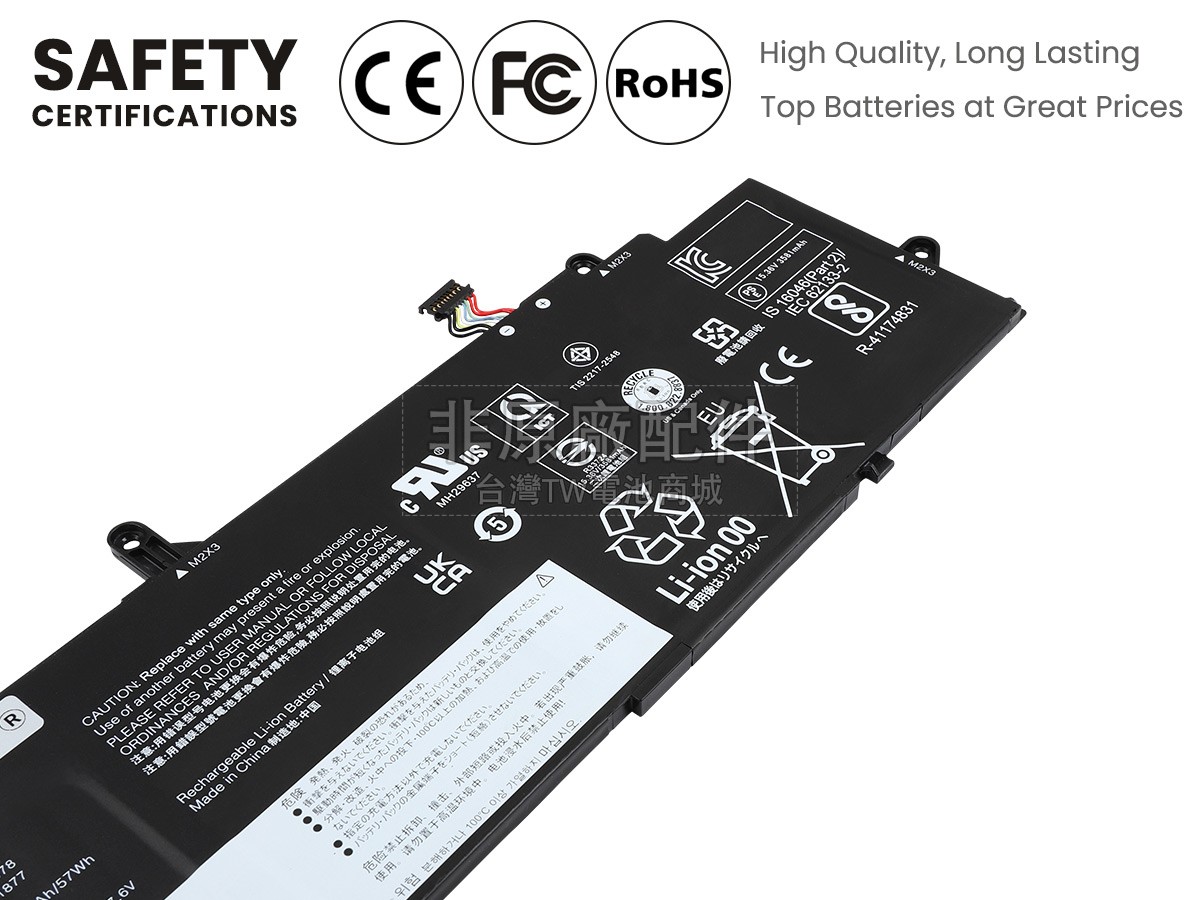 除了使用好的材料外,TW電池商城還以更高的行業標準檢測產品,目前我們的Lenovo ThinkPad T14S GEN 4 (AMD)-21F8000BCK手提電腦電池已經通過日本PSE強制認證、歐盟RoHS環保認證、CE安全認證、美國FCC認證和MSDS化學品安全認證。