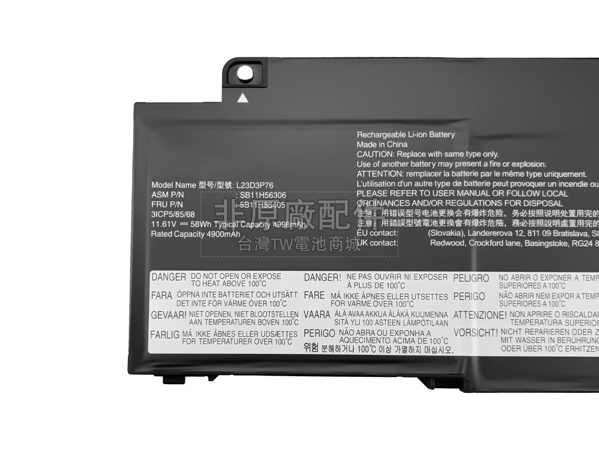 台灣TW電池商城售賣的所有電池均為100%真實容量,我們絕不會在參數上造假。對於製造商提供的每一款電池,我們都會安排技術人員進行參數測試,以確保我們售賣的電池都符合各種認證的要求、100%安全和100%兼容對應的筆記型電腦。極少數情況下,電池參數表上的容量會比電池實物圖上的容量低,這是因為我們檢測時發現製造商給出的電池容量偏高,與電池實際容量不符。於是我們會把電池的實際容量準確地填寫在參數表上,讓顧客直接看到電池的真實容量!這款Lenovo ThinkPad T14S GEN 5-21LS0039PG電池和原廠有什麼區別?
