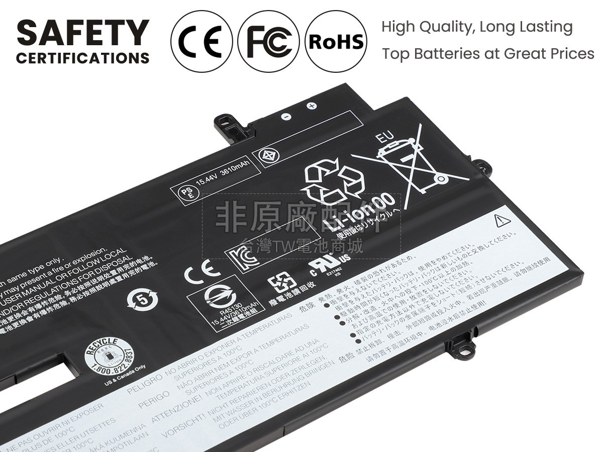 台灣TW電池商城售賣的所有電池均為100%真實容量,我們絕不會在參數上造假。對於製造商提供的每一款電池,我們都會安排技術人員進行參數測試,以確保我們售賣的電池都符合各種認證的要求、100%安全和100%兼容對應的筆記型電腦。極少數情況下,電池參數表上的容量會比電池實物圖上的容量低,這是因為我們檢測時發現製造商給出的電池容量偏高,與電池實際容量不符。於是我們會把電池的實際容量準確地填寫在參數表上,讓顧客直接看到電池的真實容量!這款Lenovo ThinkPad X1 CARBON GEN 11-21HM00ANRT電池和原廠有什麼區別?