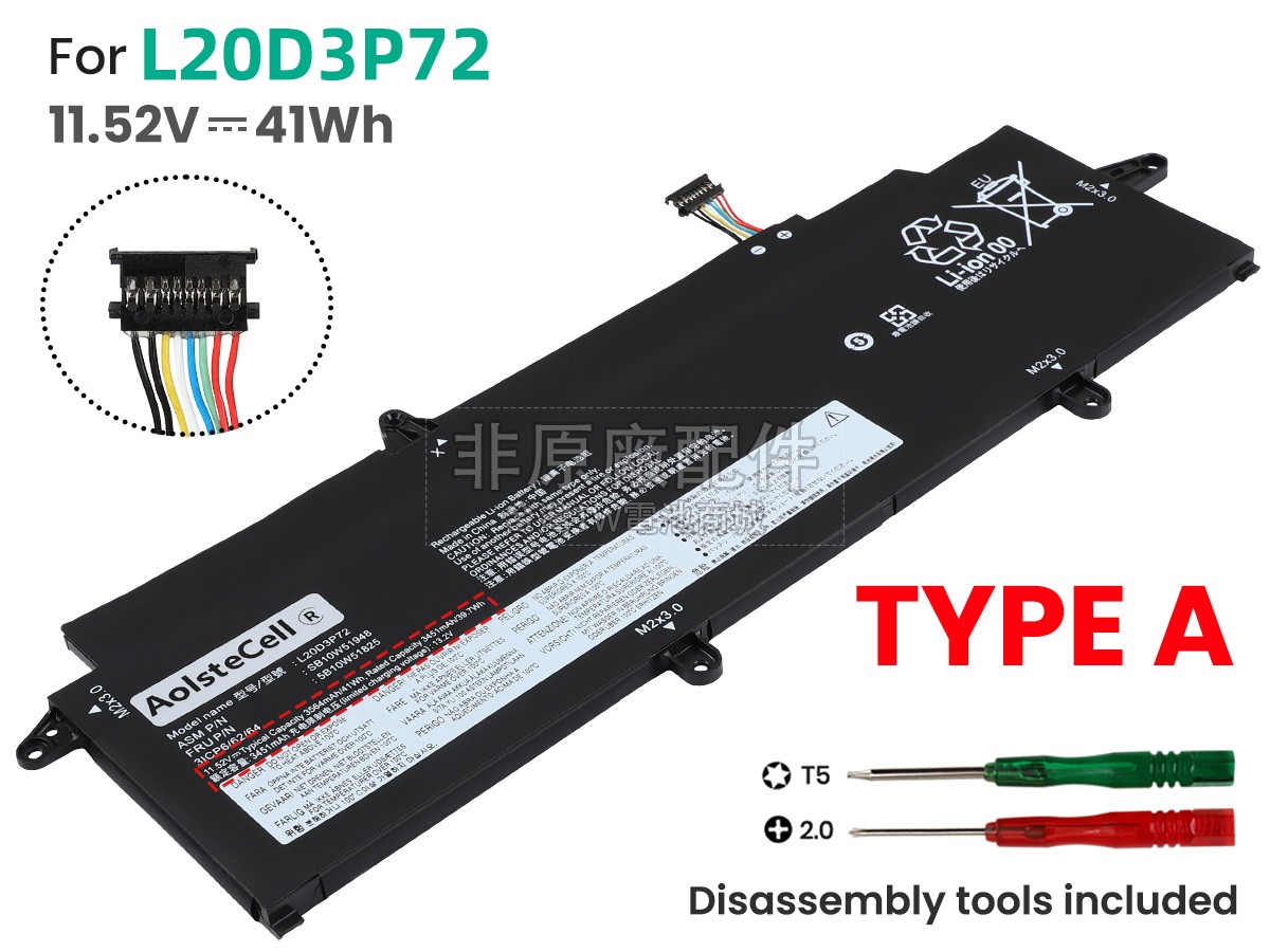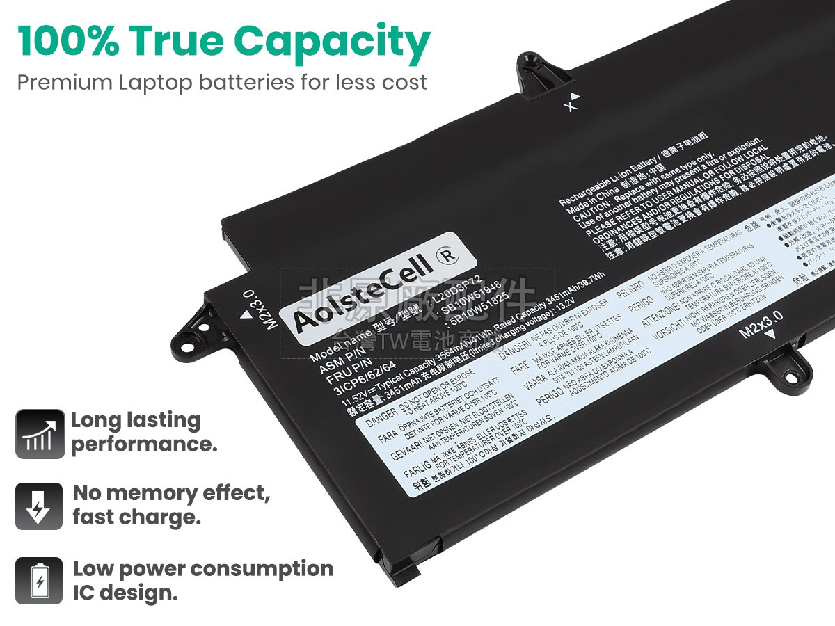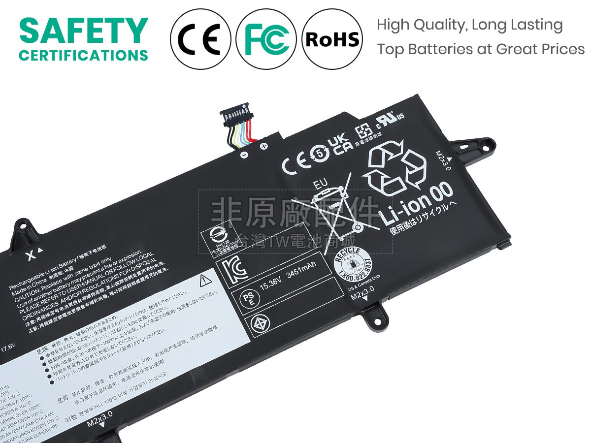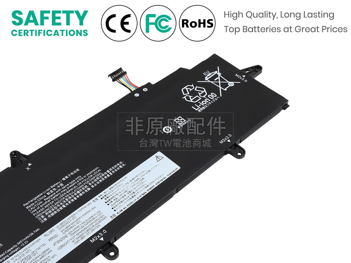 台灣TW電池商城售賣的所有電池均為100%真實容量,我們絕不會在參數上造假。對於製造商提供的每一款電池,我們都會安排技術人員進行參數測試,以確保我們售賣的電池都符合各種認證的要求、100%安全和100%兼容對應的筆記型電腦。極少數情況下,電池參數表上的容量會比電池實物圖上的容量低,這是因為我們檢測時發現製造商給出的電池容量偏高,與電池實際容量不符。於是我們會把電池的實際容量準確地填寫在參數表上,讓顧客直接看到電池的真實容量!這款Lenovo ThinkPad X13 GEN 2 (INTEL)-20WK00GWCX電池和原廠有什麼區別?