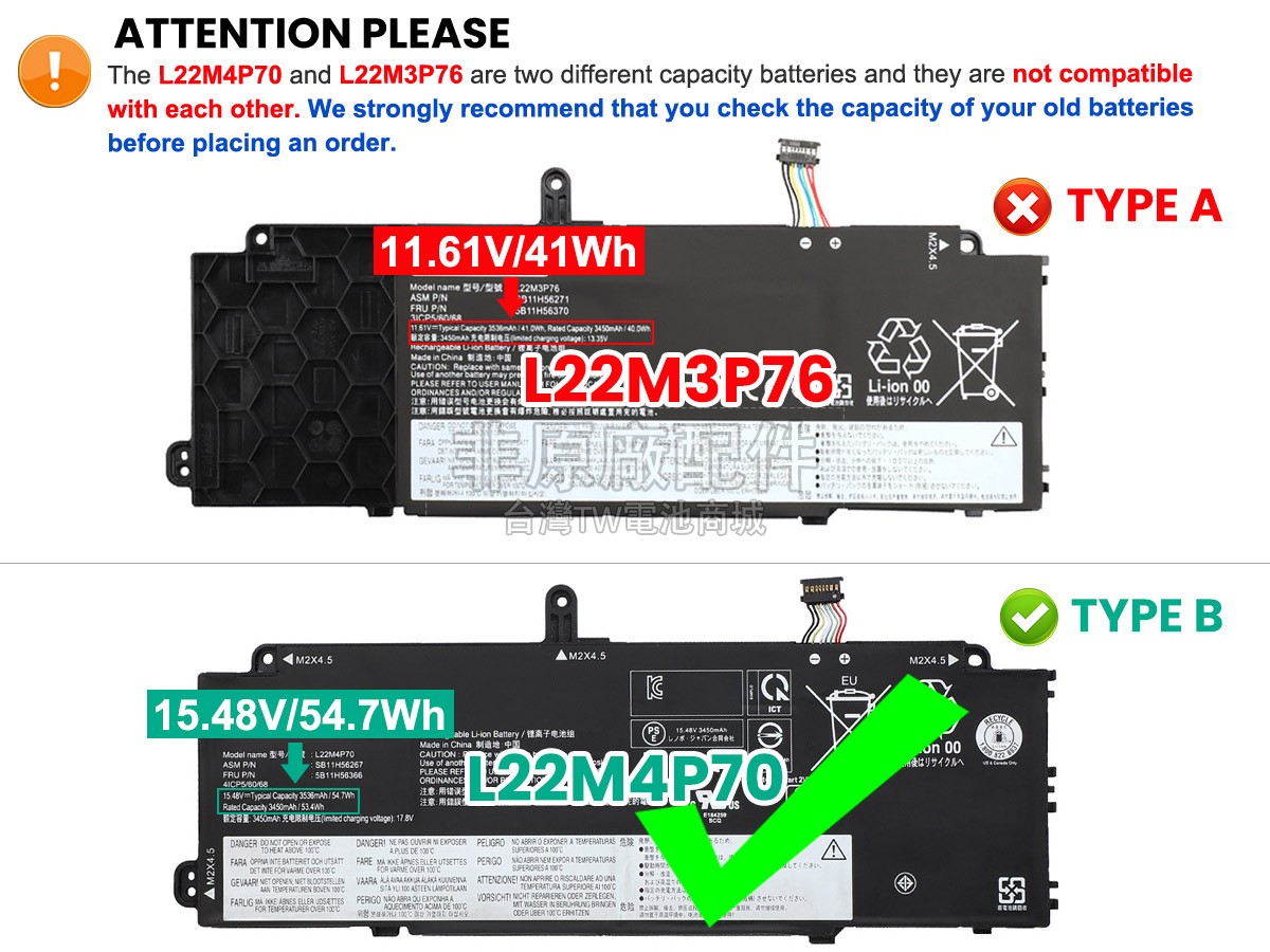 台灣TW電池商城售賣的所有電池均為100%真實容量,我們絕不會在參數上造假。對於製造商提供的每一款電池,我們都會安排技術人員進行參數測試,以確保我們售賣的電池都符合各種認證的要求、100%安全和100%兼容對應的筆記型電腦。極少數情況下,電池參數表上的容量會比電池實物圖上的容量低,這是因為我們檢測時發現製造商給出的電池容量偏高,與電池實際容量不符。於是我們會把電池的實際容量準確地填寫在參數表上,讓顧客直接看到電池的真實容量!這款Lenovo ThinkPad X13 GEN 4-21EX004FMZ電池和原廠有什麼區別?
