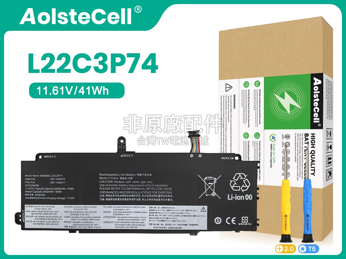 台灣TW電池商城售賣的所有電池均為100%真實容量,我們絕不會在參數上造假。對於製造商提供的每一款電池,我們都會安排技術人員進行參數測試,以確保我們售賣的電池都符合各種認證的要求、100%安全和100%兼容對應的筆記型電腦。極少數情況下,電池參數表上的容量會比電池實物圖上的容量低,這是因為我們檢測時發現製造商給出的電池容量偏高,與電池實際容量不符。於是我們會把電池的實際容量準確地填寫在參數表上,讓顧客直接看到電池的真實容量!這款Lenovo ThinkPad X13 GEN 5-21LU002EAU電池和原廠有什麼區別?