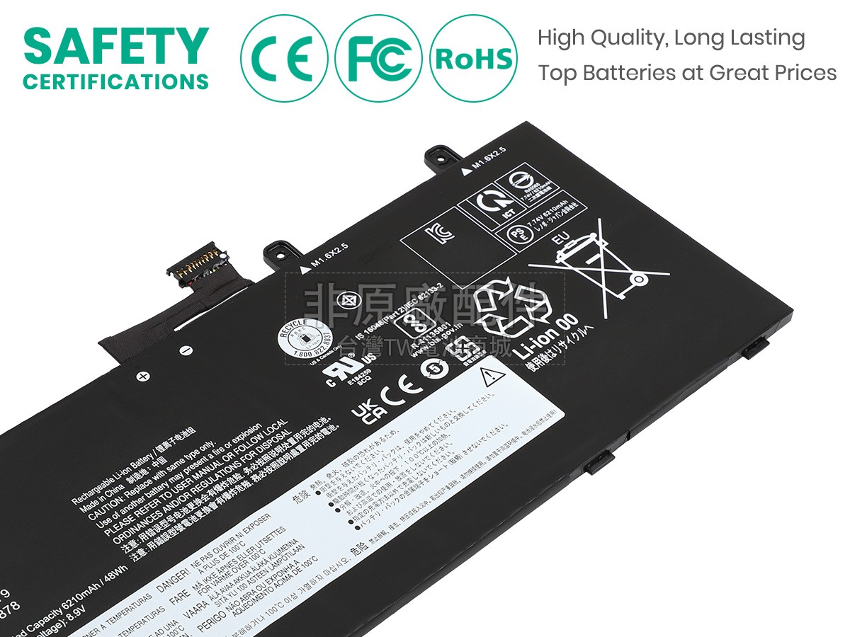 除了使用好的材料外,TW電池商城還以更高的行業標準檢測產品,目前我們的Lenovo ThinkPad X13S GEN 1-21BX000SML手提電腦電池已經通過日本PSE強制認證、歐盟RoHS環保認證、CE安全認證、美國FCC認證和MSDS化學品安全認證。