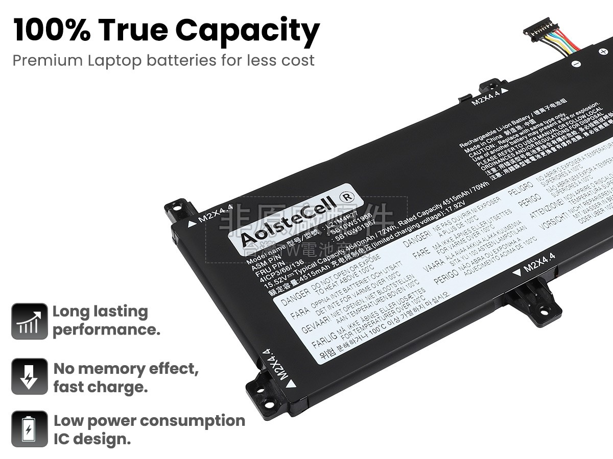 筆電電池好不好要看“芯”,內置電芯是筆電電池最重要的組成部分。 我們的LENOVO聯想ThinkPad Z16 GEN 2-21JX000VPE筆記型電腦電池都是採用原廠品質的A+級電芯組裝而成,確保更好的安全性,更長的供電時間和更久的使用壽命。