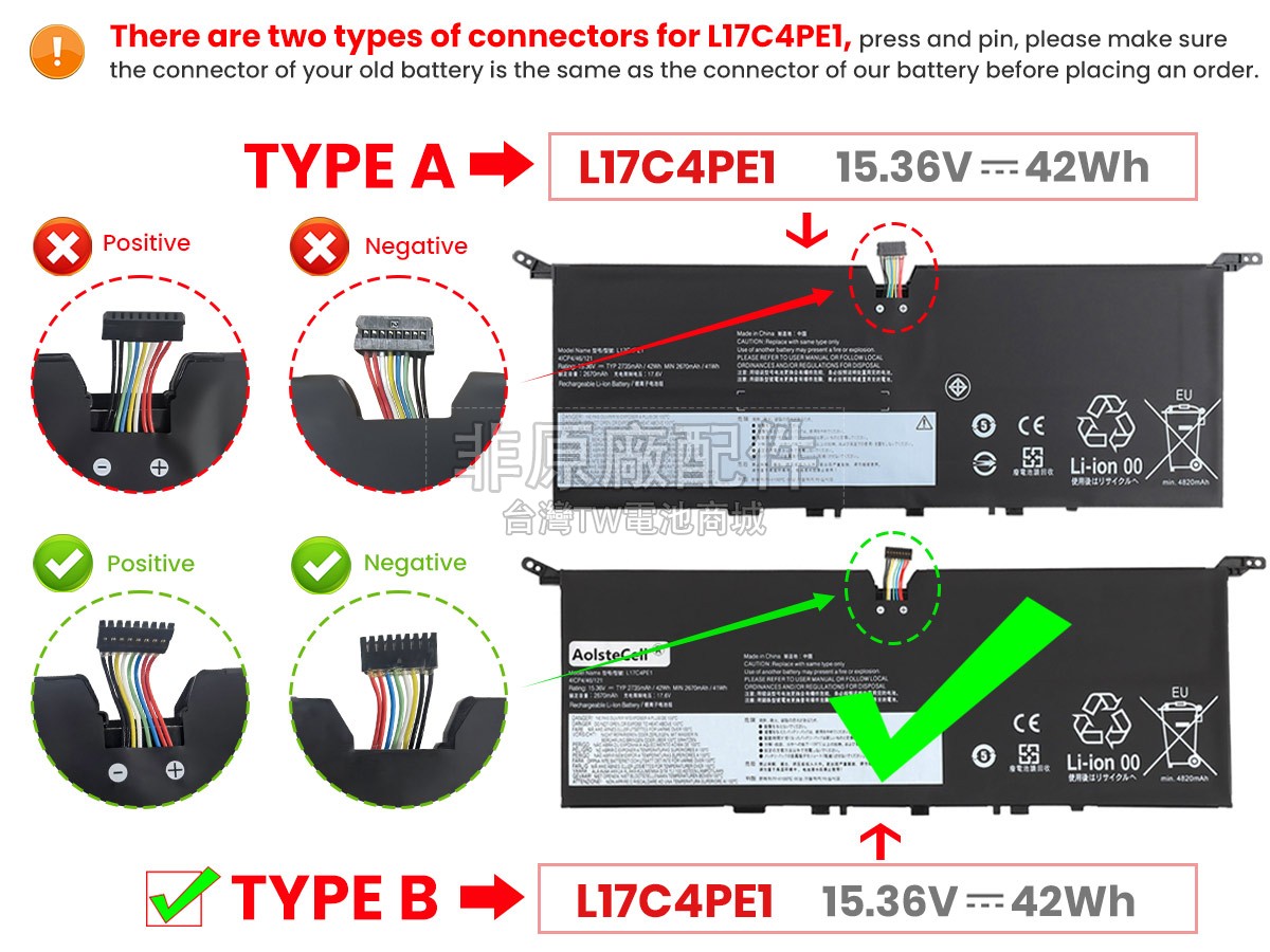 台灣TW電池商城售賣的所有電池均為100%真實容量,我們絕不會在參數上造假。對於製造商提供的每一款電池,我們都會安排技術人員進行參數測試,以確保我們售賣的電池都符合各種認證的要求、100%安全和100%兼容對應的筆記型電腦。極少數情況下,電池參數表上的容量會比電池實物圖上的容量低,這是因為我們檢測時發現製造商給出的電池容量偏高,與電池實際容量不符。於是我們會把電池的實際容量準確地填寫在參數表上,讓顧客直接看到電池的真實容量!這款Lenovo YOGA S730-13IML-81U4003SIV電池和原廠有什麼區別?