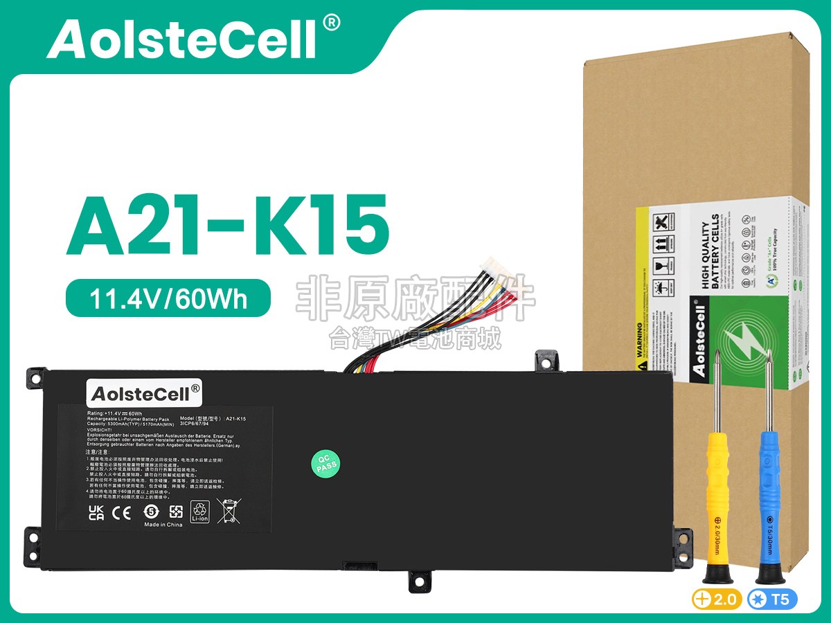 台灣TW電池商城售賣的所有電池均為100%真實容量,我們絕不會在參數上造假。對於製造商提供的每一款電池,我們都會安排技術人員進行參數測試,以確保我們售賣的電池都符合各種認證的要求、100%安全和100%兼容對應的筆記型電腦。極少數情況下,電池參數表上的容量會比電池實物圖上的容量低,這是因為我們檢測時發現製造商給出的電池容量偏高,與電池實際容量不符。於是我們會把電池的實際容量準確地填寫在參數表上,讓顧客直接看到電池的真實容量!這款Machenike A21-K15電池和原廠有什麼區別?