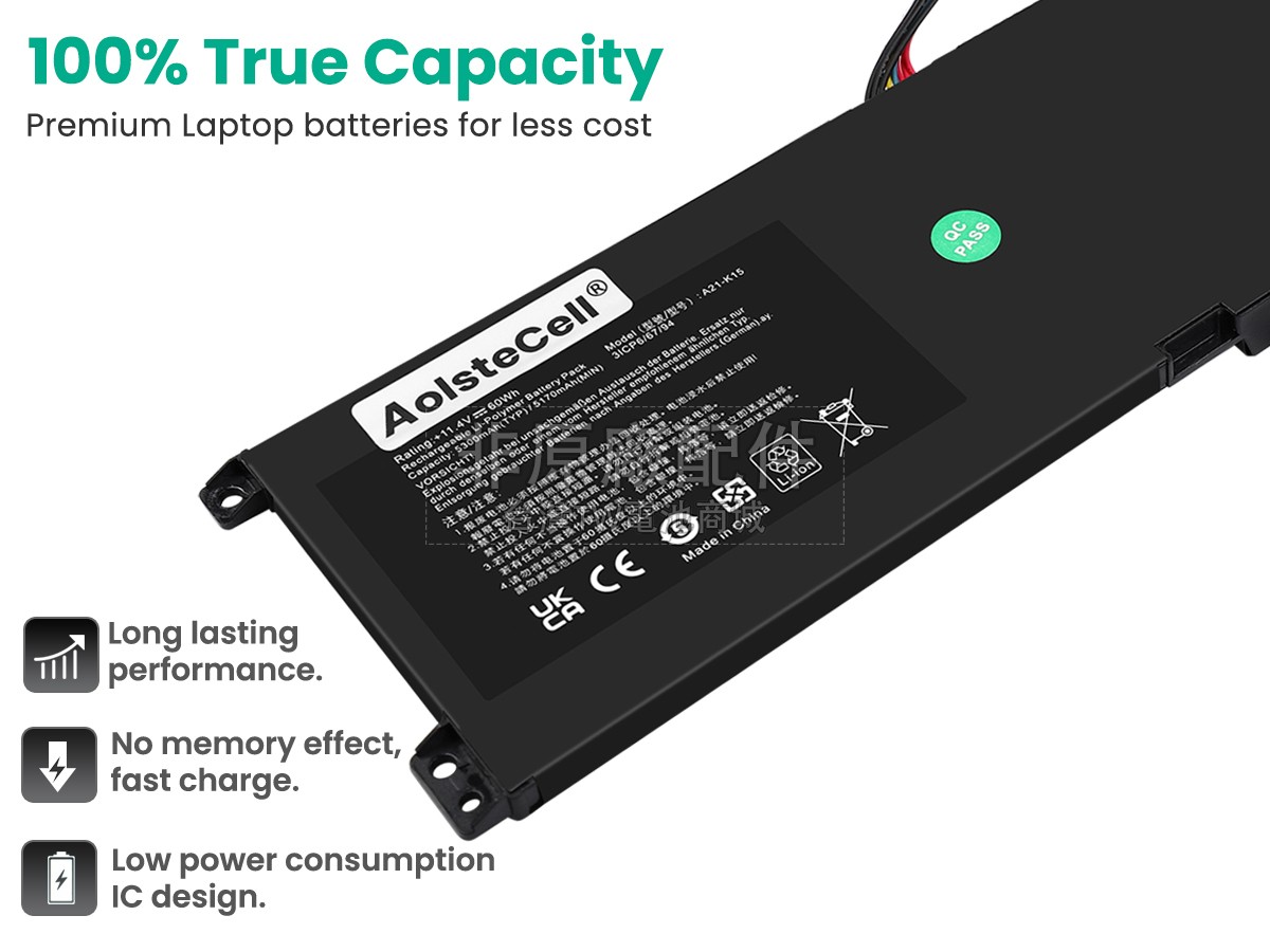 筆電電池好不好要看“芯”,內置電芯是筆電電池最重要的組成部分。 我們的MACHENIKE A21-K15筆記型電腦電池都是採用原廠品質的A+級電芯組裝而成,確保更好的安全性,更長的供電時間和更久的使用壽命。