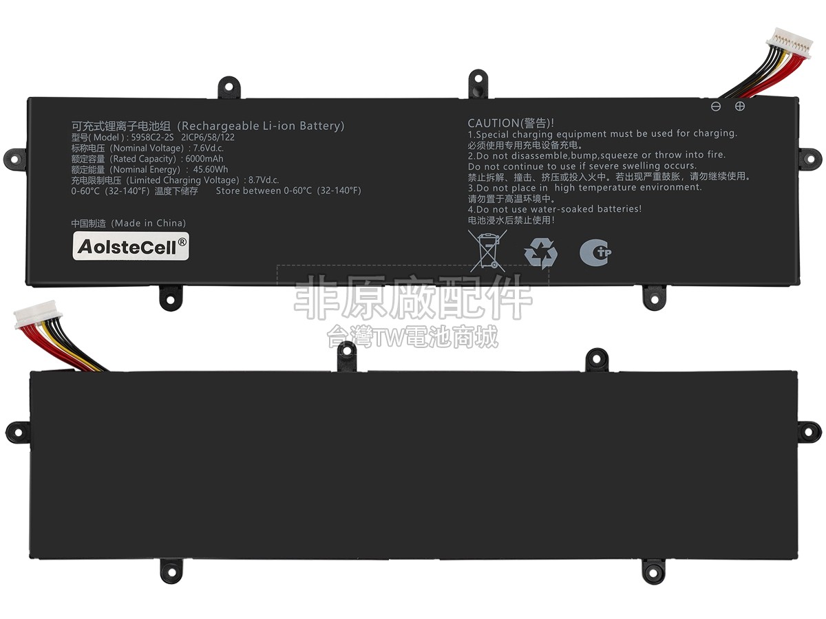 台灣TW電池商城售賣的所有電池均為100%真實容量,我們絕不會在參數上造假。對於製造商提供的每一款電池,我們都會安排技術人員進行參數測試,以確保我們售賣的電池都符合各種認證的要求、100%安全和100%兼容對應的筆記型電腦。極少數情況下,電池參數表上的容量會比電池實物圖上的容量低,這是因為我們檢測時發現製造商給出的電池容量偏高,與電池實際容量不符。於是我們會把電池的實際容量準確地填寫在參數表上,讓顧客直接看到電池的真實容量!這款Mechrevo 5958C2-2S電池和原廠有什麼區別?
