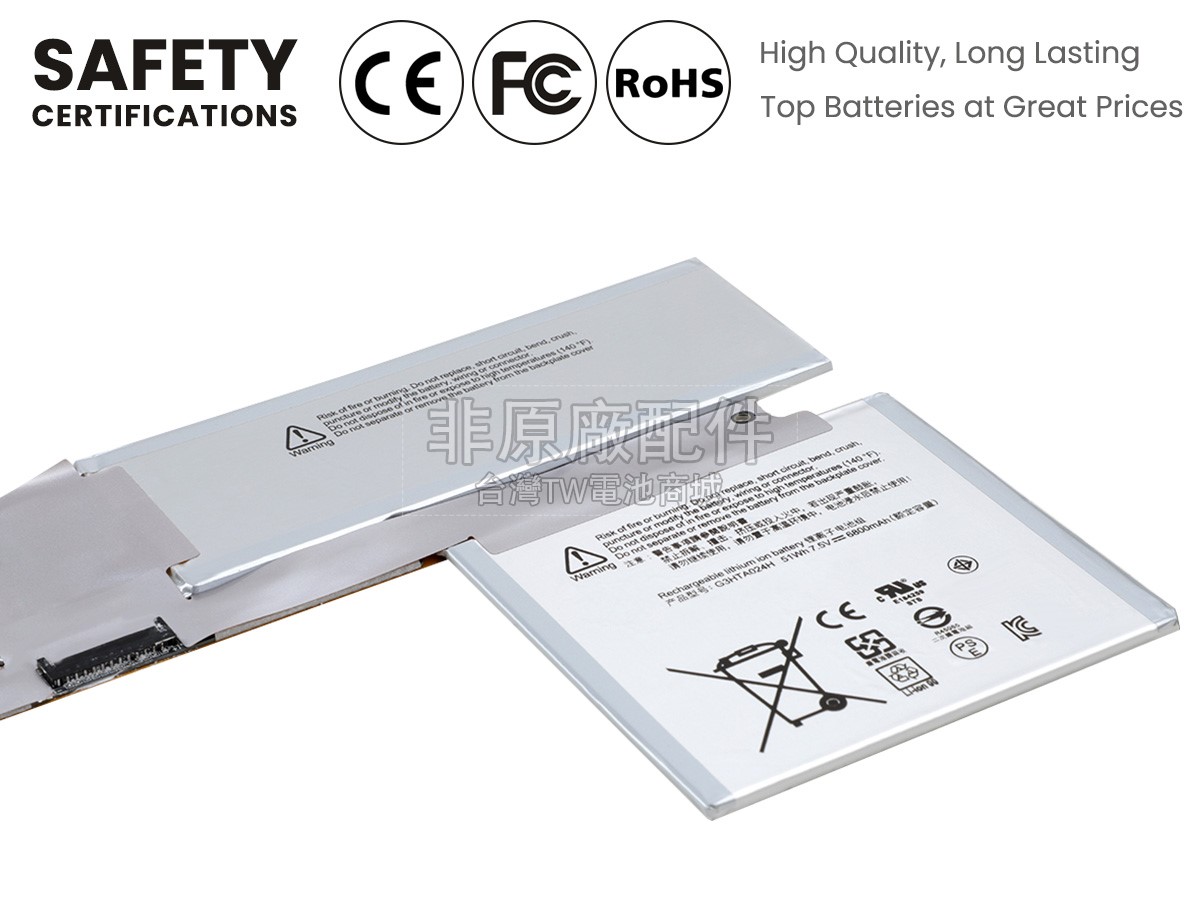 台灣TW電池商城售賣的所有電池均為100%真實容量,我們絕不會在參數上造假。對於製造商提供的每一款電池,我們都會安排技術人員進行參數測試,以確保我們售賣的電池都符合各種認證的要求、100%安全和100%兼容對應的筆記型電腦。極少數情況下,電池參數表上的容量會比電池實物圖上的容量低,這是因為我們檢測時發現製造商給出的電池容量偏高,與電池實際容量不符。於是我們會把電池的實際容量準確地填寫在參數表上,讓顧客直接看到電池的真實容量!這款Microsoft Surface BOOK電池和原廠有什麼區別?