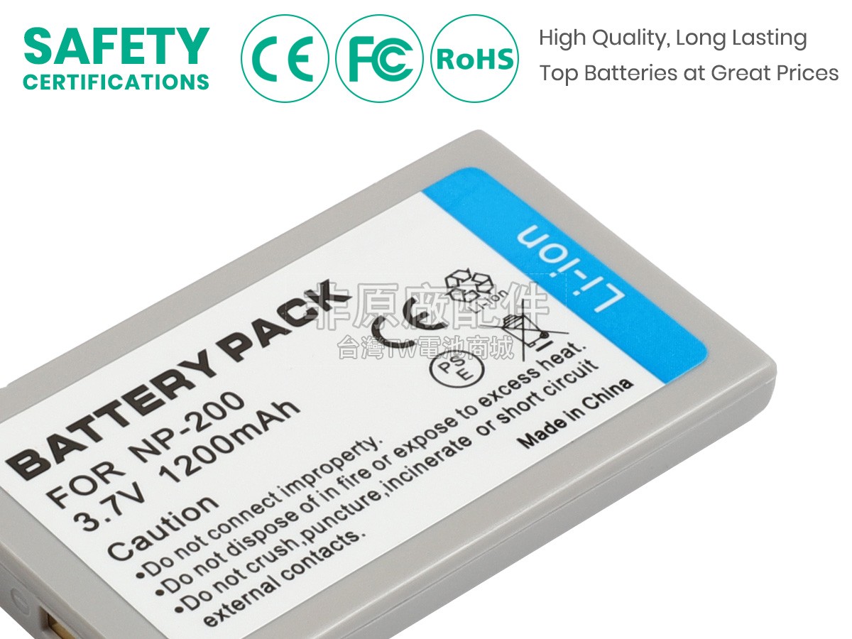 除了使用好的材料外,TW電池商城還以更高的行業標準檢測產品,目前我們的Minolta DIMAGE XT電池已經通過日本PSE強制認證、歐盟RoHS環保認證、CE安全認證、美國FCC認證和MSDS化學品安全認證。