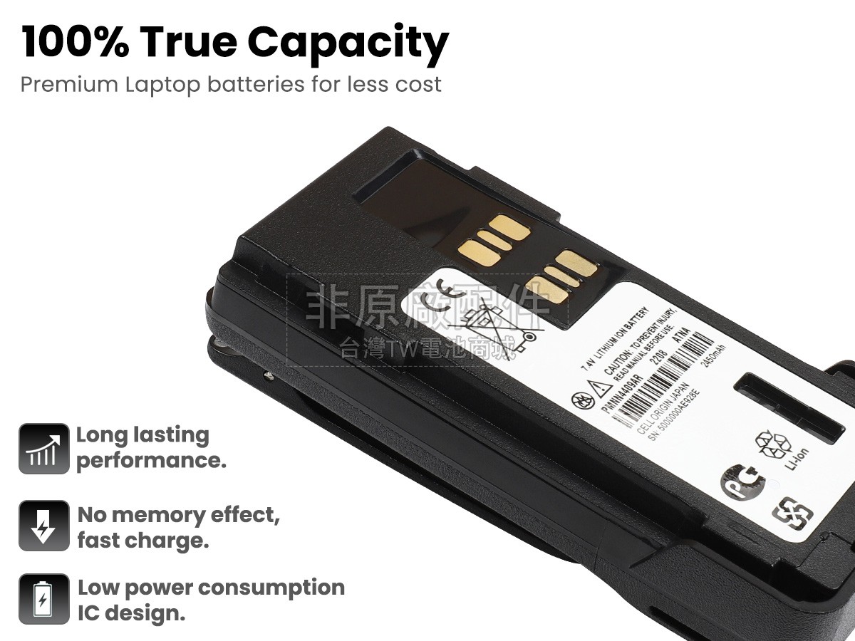 為什麼您應該從我們這裡購買MOTOROLA PMNN4412電池?電池是一種特殊的消耗品,用料的好壞直接決定了電池的性能和壽命。為了保證顧客良好的使用體驗,我們在這款原廠品質的Motorola PMNN4412電池投入了高昂的材料成本,採用全新原廠進口的A+級電芯、美國德州TI芯片和耐高溫抗磨損的ABS+PC合金環保材料,經過100多道安全檢測製造而成。從而保證,這款電池無論在性能、壽命還是安全上都可以滿足您日常休閒、娛樂和辦公的需求。