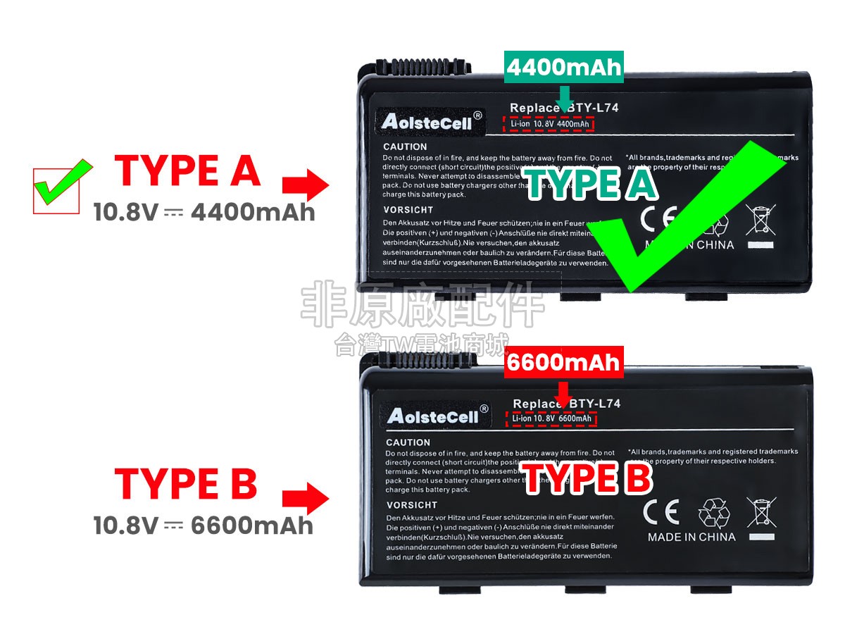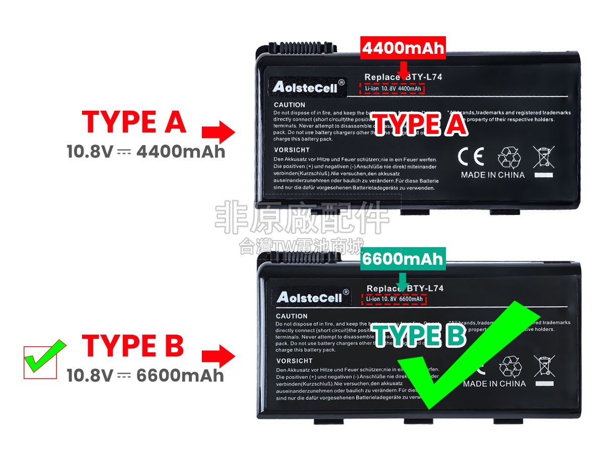 台灣TW電池商城售賣的所有電池均為100%真實容量,我們絕不會在參數上造假。對於製造商提供的每一款電池,我們都會安排技術人員進行參數測試,以確保我們售賣的電池都符合各種認證的要求、100%安全和100%兼容對應的筆記型電腦。極少數情況下,電池參數表上的容量會比電池實物圖上的容量低,這是因為我們檢測時發現製造商給出的電池容量偏高,與電池實際容量不符。於是我們會把電池的實際容量準確地填寫在參數表上,讓顧客直接看到電池的真實容量!這款MSI 957-173XXP-101電池和原廠有什麼區別?