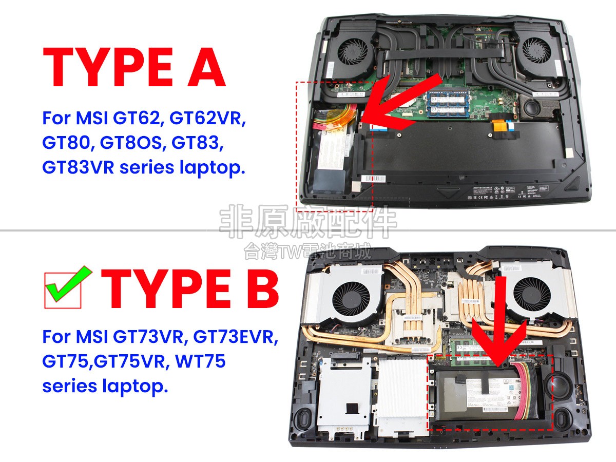台灣TW電池商城售賣的所有電池均為100%真實容量,我們絕不會在參數上造假。對於製造商提供的每一款電池,我們都會安排技術人員進行參數測試,以確保我們售賣的電池都符合各種認證的要求、100%安全和100%兼容對應的筆記型電腦。極少數情況下,電池參數表上的容量會比電池實物圖上的容量低,這是因為我們檢測時發現製造商給出的電池容量偏高,與電池實際容量不符。於是我們會把電池的實際容量準確地填寫在參數表上,讓顧客直接看到電池的真實容量!這款MSI GT73VR 6RF-099CA電池和原廠有什麼區別?