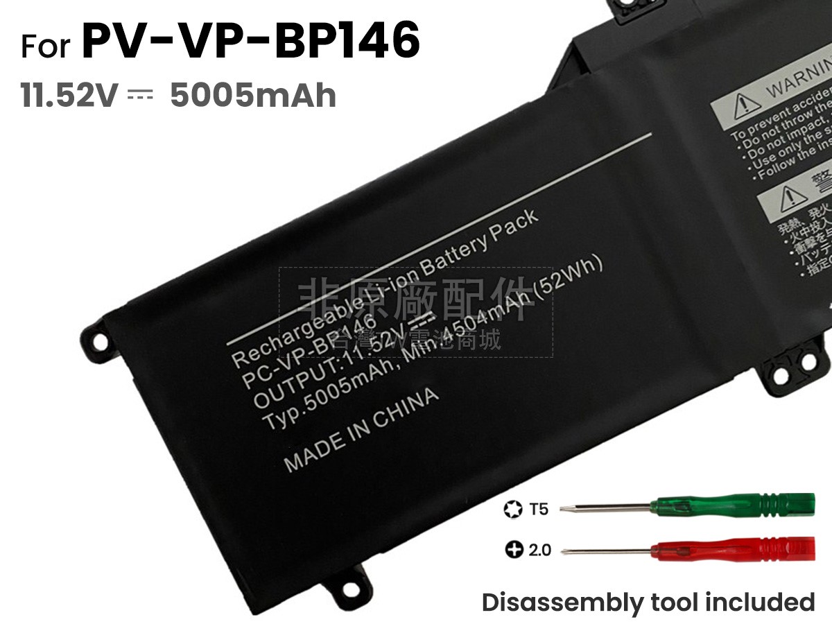台灣TW電池商城售賣的所有電池均為100%真實容量,我們絕不會在參數上造假。對於製造商提供的每一款電池,我們都會安排技術人員進行參數測試,以確保我們售賣的電池都符合各種認證的要求、100%安全和100%兼容對應的筆記型電腦。極少數情況下,電池參數表上的容量會比電池實物圖上的容量低,這是因為我們檢測時發現製造商給出的電池容量偏高,與電池實際容量不符。於是我們會把電池的實際容量準確地填寫在參數表上,讓顧客直接看到電池的真實容量!這款NEC PC-VP-BP146電池和原廠有什麼區別?