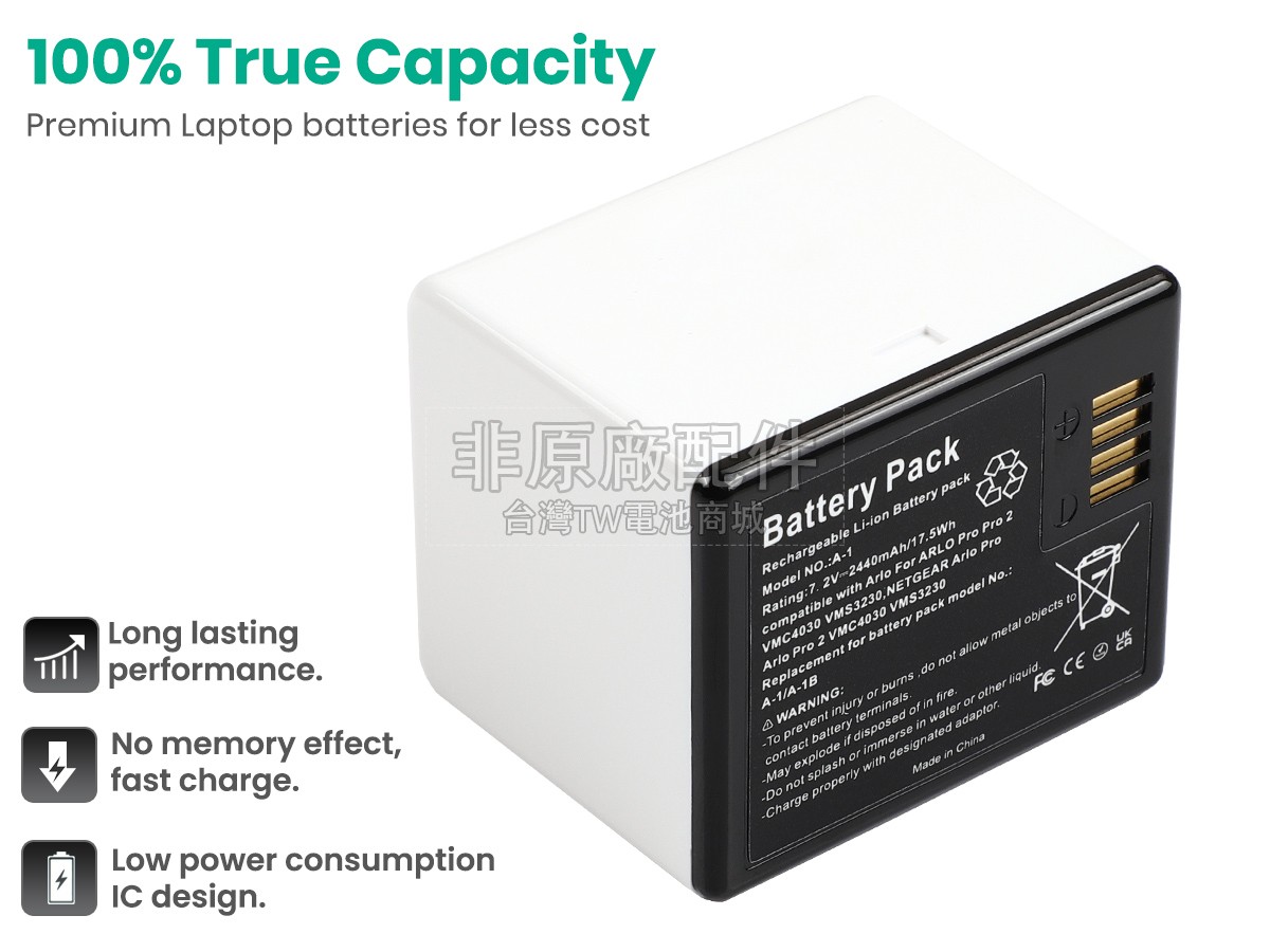 台灣TW電池商城售賣的所有電池均為100%真實容量,我們絕不會在參數上造假。對於製造商提供的每一款電池,我們都會安排技術人員進行參數測試,以確保我們售賣的電池都符合各種認證的要求、100%安全和100%兼容。極少數情況下,電池參數表上的容量會比電池實物圖上的容量低,這是因為我們檢測時發現製造商給出的電池容量偏高,與電池實際容量不符。於是我們會把電池的實際容量準確地填寫在參數表上,讓顧客直接看到電池的真實容量!這款Netgear A-1電池和原廠有什麼區別?