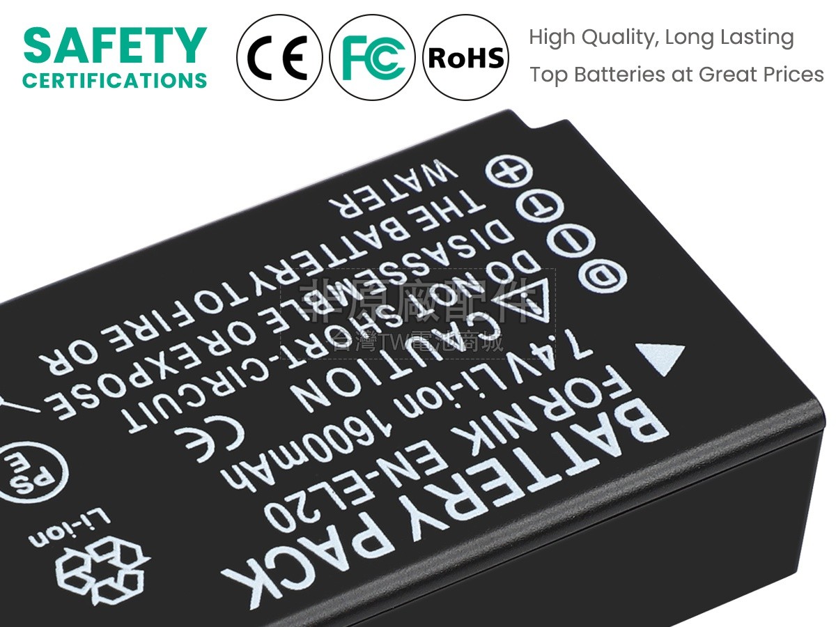 在TW電池商城,您的隱私和信息安全至關重要。 我們已採取一切必要措施確保您的購物體驗100%安全。 請放心購買NIKON 1 S1電池!