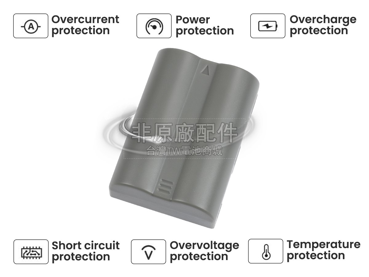 台灣TW電池商城售賣的所有電池均為100%真實容量,我們絕不會在參數上造假。對於製造商提供的每一款電池,我們都會安排技術人員進行參數測試,以確保我們售賣的電池都符合各種認證的要求、100%安全和100%兼容。極少數情況下,電池參數表上的容量會比電池實物圖上的容量低,這是因為我們檢測時發現製造商給出的電池容量偏高,與電池實際容量不符。於是我們會把電池的實際容量準確地填寫在參數表上,讓顧客直接看到電池的真實容量!這款Nikon D80電池和原廠有什麼區別?