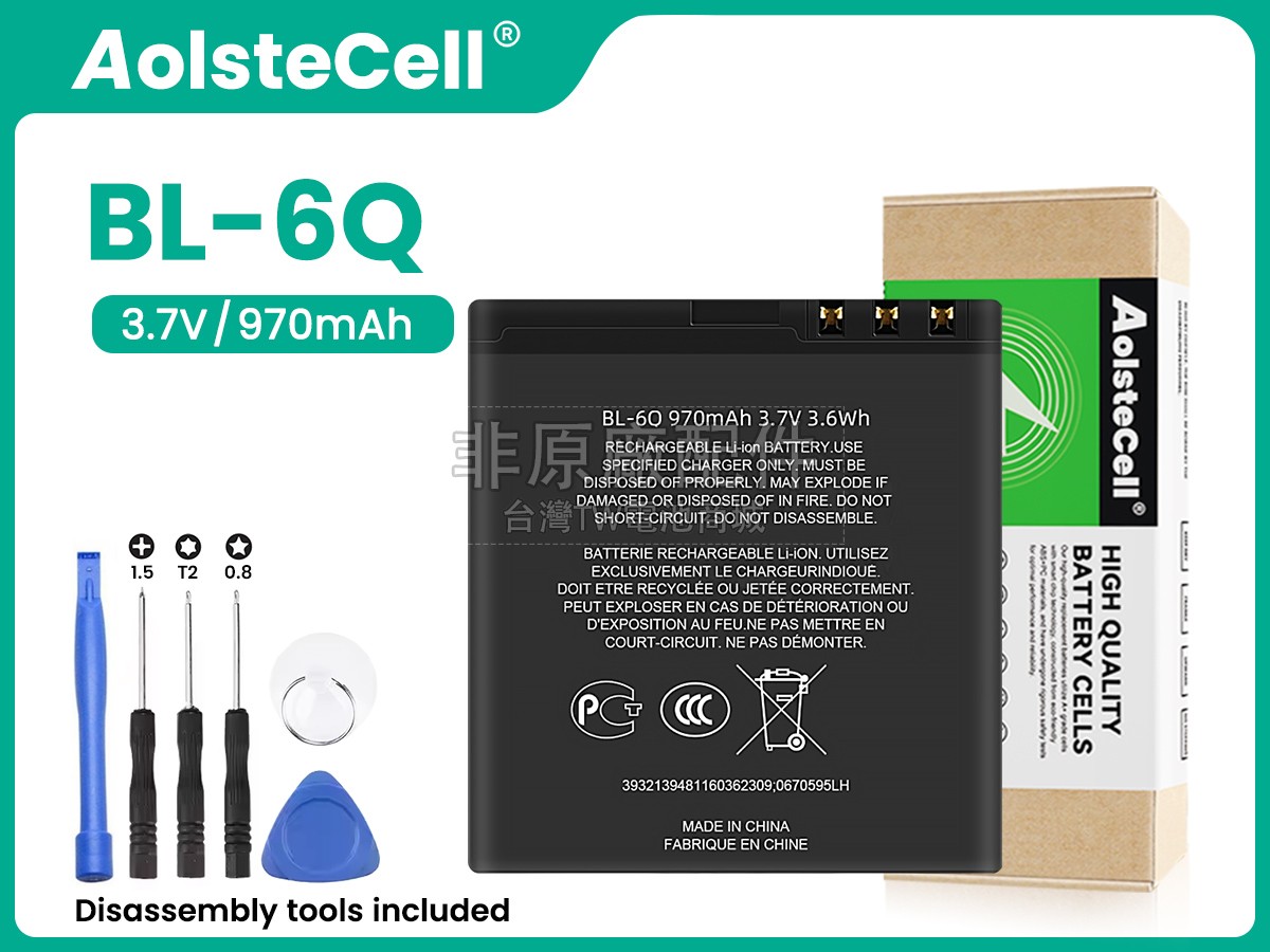 台灣TW電池商城售賣的所有電池均為100%真實容量,我們絕不會在參數上造假。對於製造商提供的每一款電池,我們都會安排技術人員進行參數測試,以確保我們售賣的電池都符合各種認證的要求、100%安全和100%兼容。極少數情況下,電池參數表上的容量會比電池實物圖上的容量低,這是因為我們檢測時發現製造商給出的電池容量偏高,與電池實際容量不符。於是我們會把電池的實際容量準確地填寫在參數表上,讓顧客直接看到電池的真實容量!這款Nokia BL-6Q電池和原廠有什麼區別?