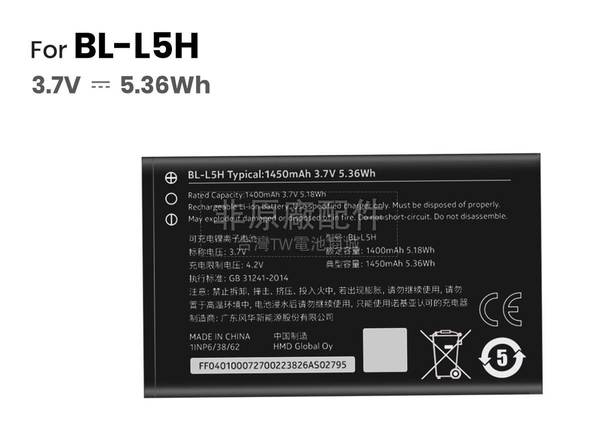 為什麼您應該從我們這裡購買NOKIA諾基亞BL-L5H電池?電池是一種特殊的消耗品,用料的好壞直接決定了電池的性能和壽命。為了保證顧客良好的使用體驗,我們在這款原廠品質的Nokia BL-L5H電池投入了高昂的材料成本,採用全新原廠進口的A+級電芯、美國德州TI芯片和耐高溫抗磨損的ABS+PC合金環保材料,經過100多道安全檢測製造而成。從而保證,這款電池無論在性能、壽命還是安全上都可以滿足您日常休閒、娛樂和辦公的需求。