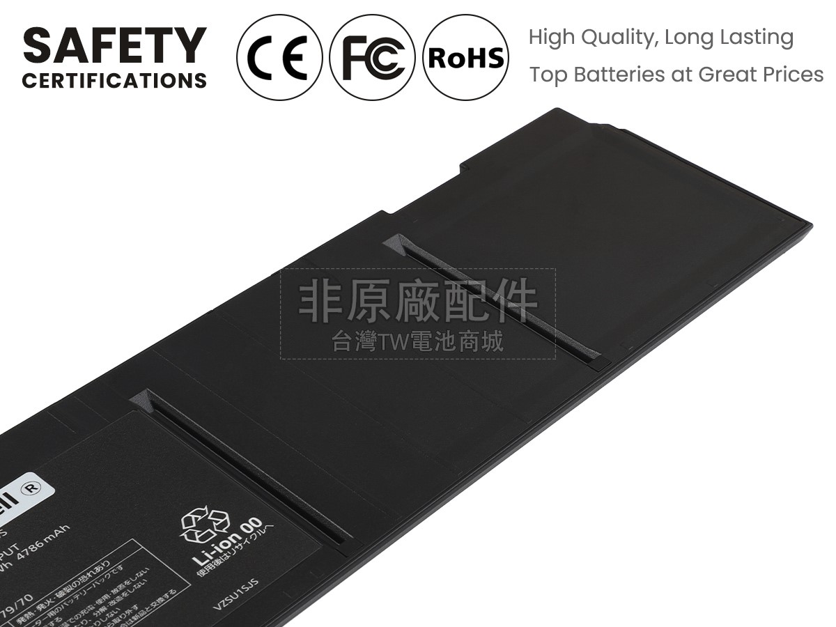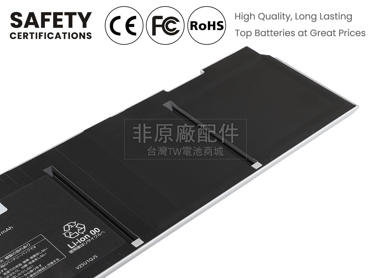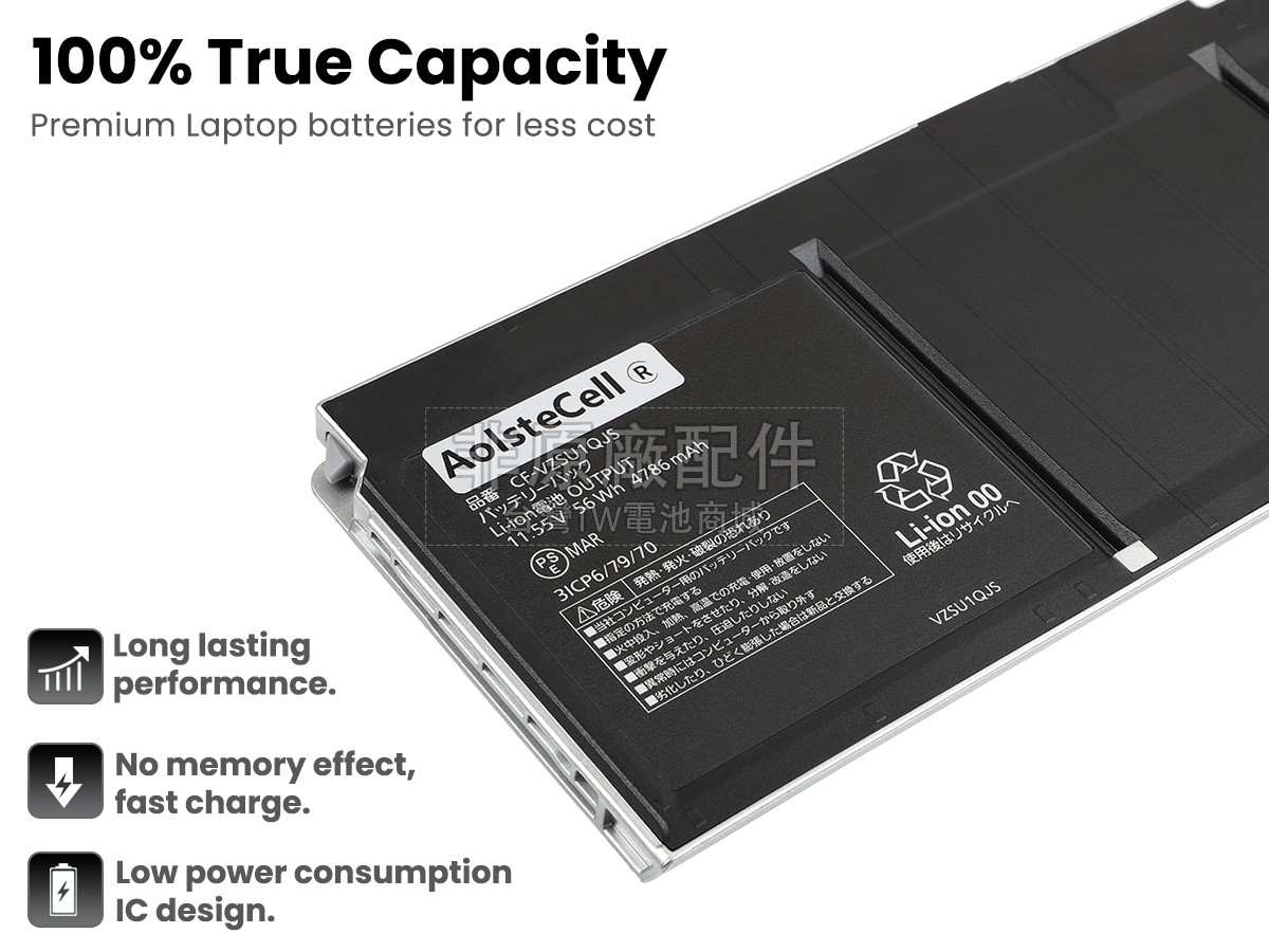 台灣TW電池商城售賣的所有電池均為100%真實容量,我們絕不會在參數上造假。對於製造商提供的每一款電池,我們都會安排技術人員進行參數測試,以確保我們售賣的電池都符合各種認證的要求、100%安全和100%兼容對應的筆記型電腦。極少數情況下,電池參數表上的容量會比電池實物圖上的容量低,這是因為我們檢測時發現製造商給出的電池容量偏高,與電池實際容量不符。於是我們會把電池的實際容量準確地填寫在參數表上,讓顧客直接看到電池的真實容量!這款Panasonic CF-VZSU1SJS電池和原廠有什麼區別?