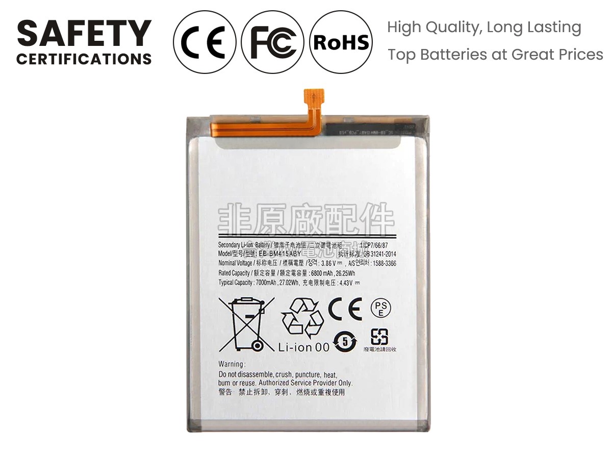 電池存放方式不當、存放時間過久都會對電池性能和壽命造成巨大的傷害。我們只向顧客銷售最新的SAMSUNG三星EB-BM415ABY電池,且我們的電池在出庫之前都會進行一系列嚴格的質量檢測和安全測試, 確保顧客收到的電池都是狀態良好、品質可靠的新電池。