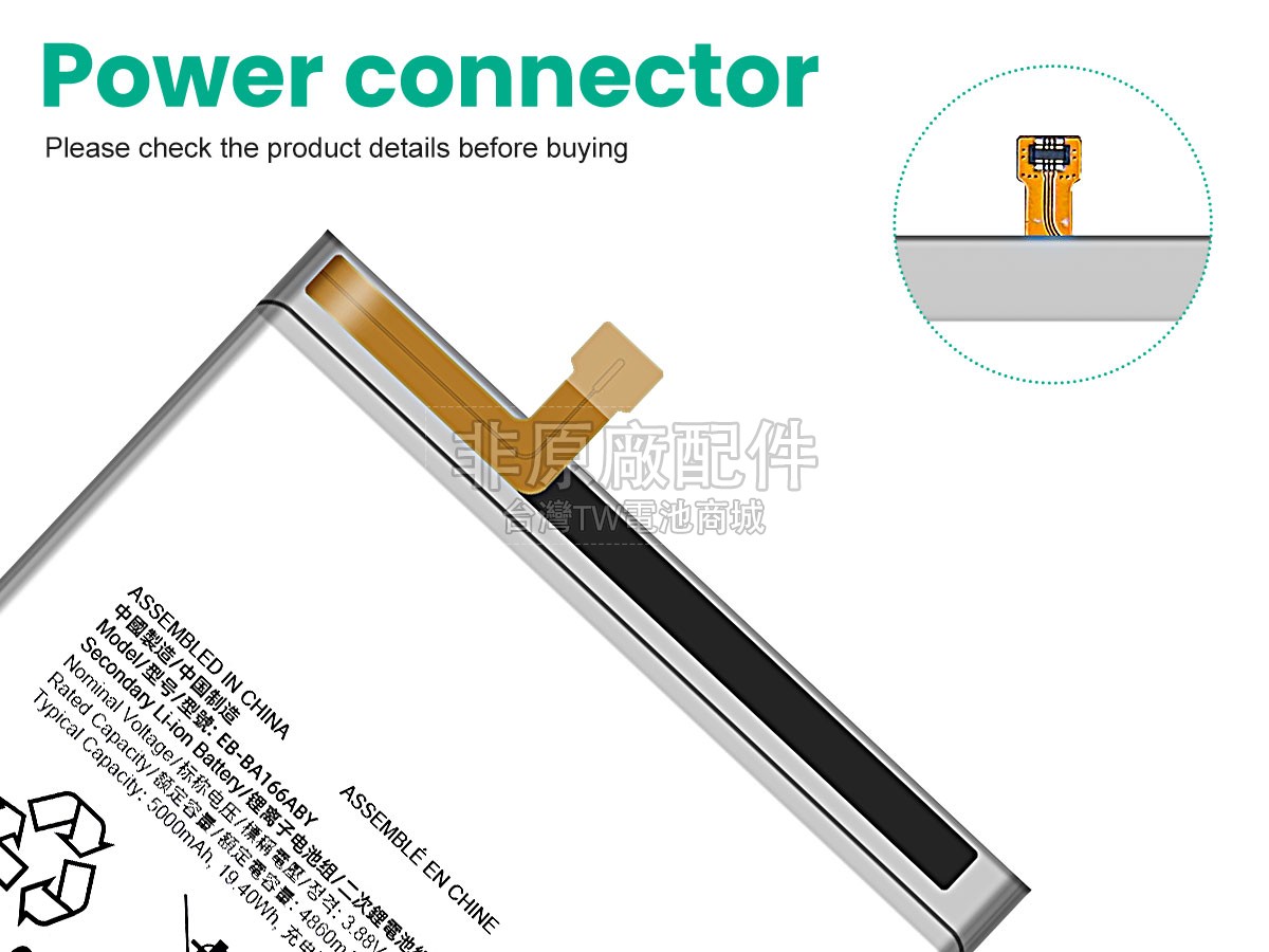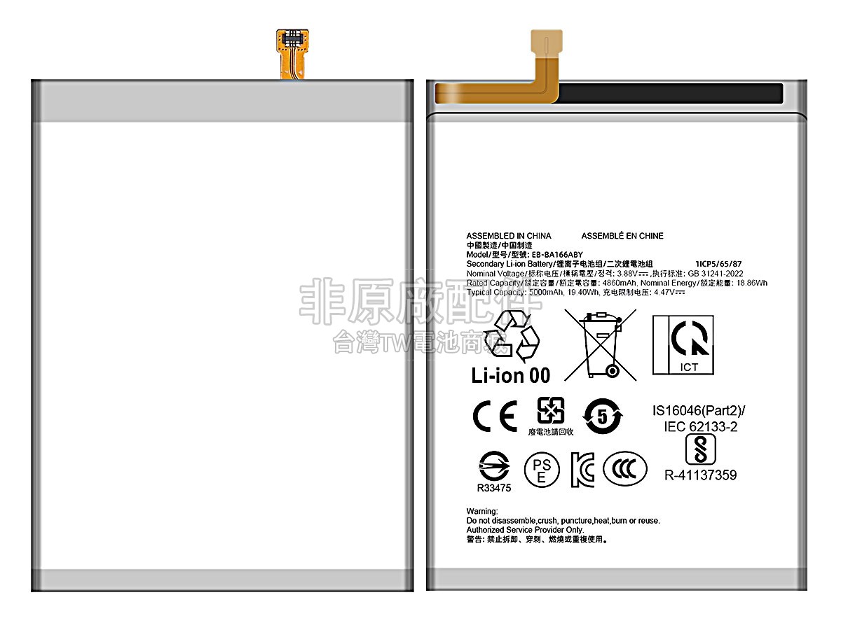 台灣TW電池商城售賣的所有電池均為100%真實容量,我們絕不會在參數上造假。對於製造商提供的每一款電池,我們都會安排技術人員進行參數測試,以確保我們售賣的電池都符合各種認證的要求、100%安全和100%兼容。極少數情況下,電池參數表上的容量會比電池實物圖上的容量低,這是因為我們檢測時發現製造商給出的電池容量偏高,與電池實際容量不符。於是我們會把電池的實際容量準確地填寫在參數表上,讓顧客直接看到電池的真實容量!這款Samsung GALAXY A16 5G電池和原廠有什麼區別?