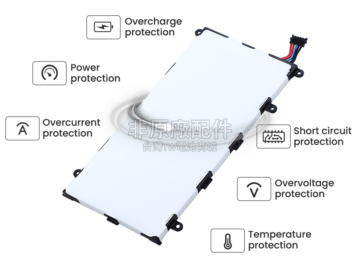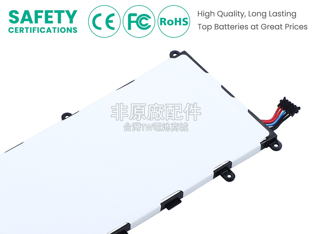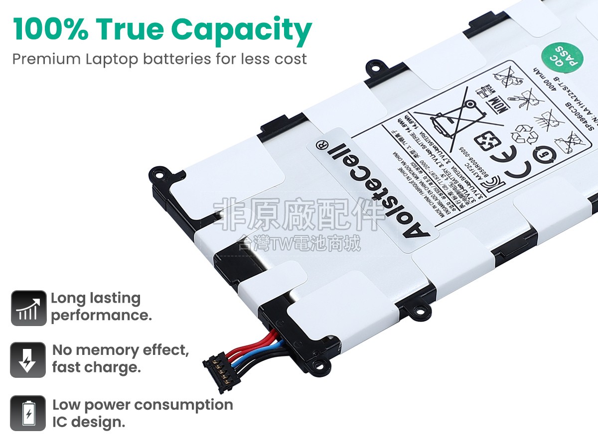 台灣TW電池商城售賣的所有電池均為100%真實容量,我們絕不會在參數上造假。對於製造商提供的每一款電池,我們都會安排技術人員進行參數測試,以確保我們售賣的電池都符合各種認證的要求、100%安全和100%兼容對應的筆記型電腦。極少數情況下,電池參數表上的容量會比電池實物圖上的容量低,這是因為我們檢測時發現製造商給出的電池容量偏高,與電池實際容量不符。於是我們會把電池的實際容量準確地填寫在參數表上,讓顧客直接看到電池的真實容量!這款Samsung Galaxy TAB 2 7.0 PLUS電池和原廠有什麼區別?