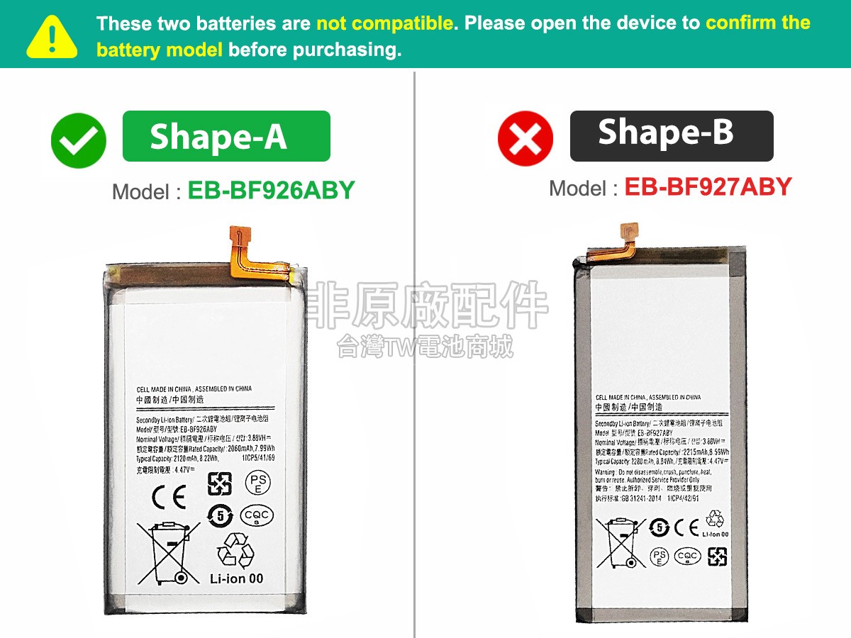 SAMSUNG三星GALAXY Z FOLD 3 5G 7.6INCH SM-F9260電池適合的型號並沒有一一列出來,如果您無法確定它是否適合您的設備,可以通過電池鏈接申請頁面請求幫助。