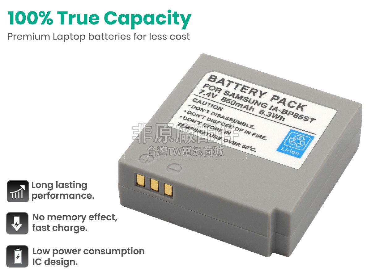 台灣TW電池商城售賣的所有電池均為100%真實容量,我們絕不會在參數上造假。對於製造商提供的每一款電池,我們都會安排技術人員進行參數測試,以確保我們售賣的電池都符合各種認證的要求、100%安全和100%兼容。極少數情況下,電池參數表上的容量會比電池實物圖上的容量低,這是因為我們檢測時發現製造商給出的電池容量偏高,與電池實際容量不符。於是我們會把電池的實際容量準確地填寫在參數表上,讓顧客直接看到電池的真實容量!這款Samsung SC-HMX10C電池和原廠有什麼區別?