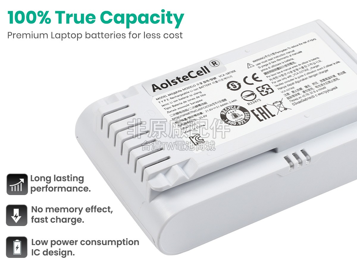 台灣TW電池商城售賣的所有電池均為100%真實容量,我們絕不會在參數上造假。對於製造商提供的每一款電池,我們都會安排技術人員進行參數測試,以確保我們售賣的電池都符合各種認證的要求、100%安全和100%兼容對應的無線吸層器。極少數情況下,電池參數表上的容量會比電池實物圖上的容量低,這是因為我們檢測時發現製造商給出的電池容量偏高,與電池實際容量不符。於是我們會把電池的實際容量準確地填寫在參數表上,讓顧客直接看到電池的真實容量!這款Samsung VCA-SBT90E電池和原廠有什麼區別?