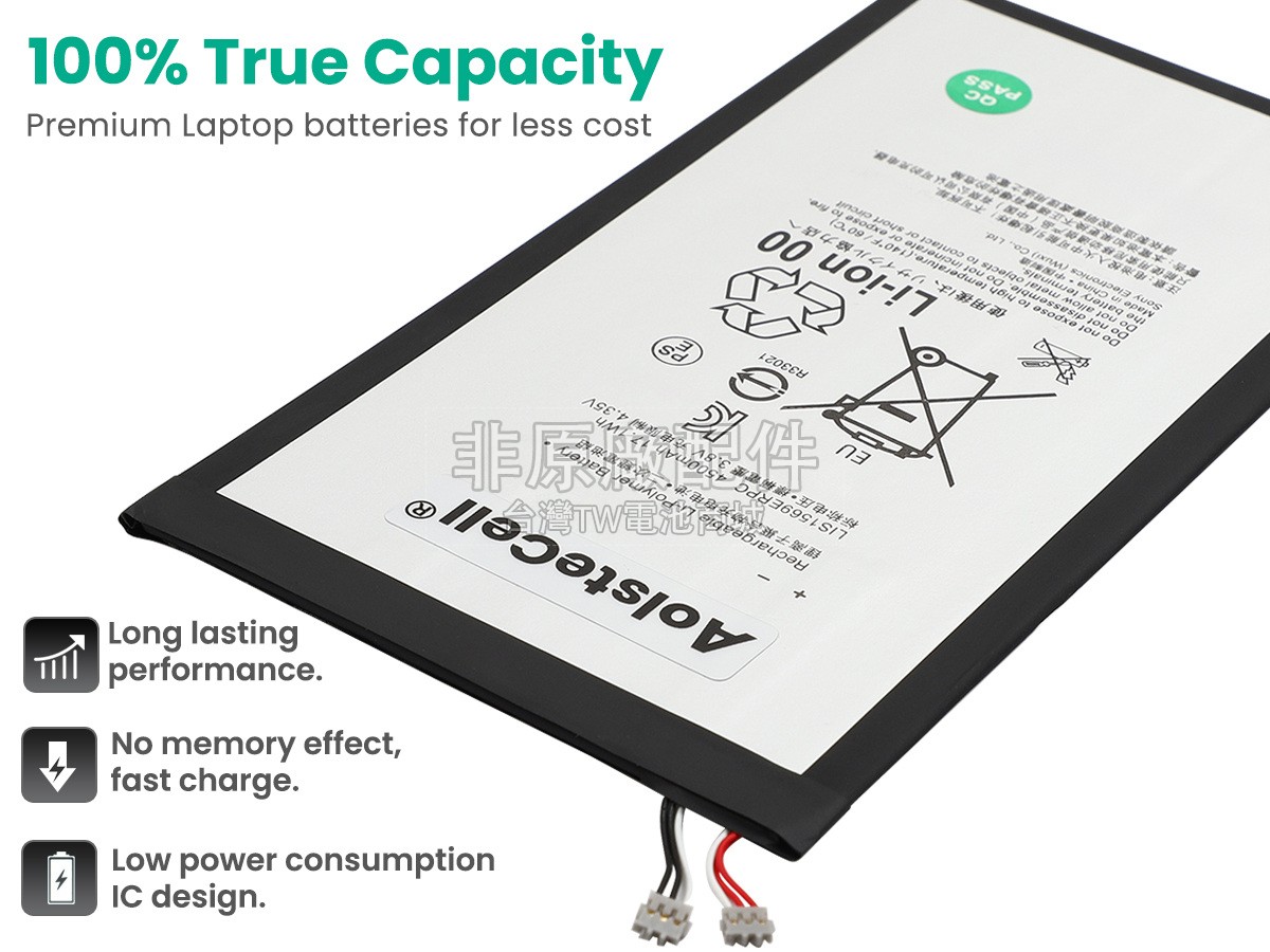 台灣TW電池商城售賣的所有電池均為100%真實容量,我們絕不會在參數上造假。對於製造商提供的每一款電池,我們都會安排技術人員進行參數測試,以確保我們售賣的電池都符合各種認證的要求、100%安全和100%兼容對應的筆記型電腦。極少數情況下,電池參數表上的容量會比電池實物圖上的容量低,這是因為我們檢測時發現製造商給出的電池容量偏高,與電池實際容量不符。於是我們會把電池的實際容量準確地填寫在參數表上,讓顧客直接看到電池的真實容量!這款Sony LIS1569ERPC電池和原廠有什麼區別?