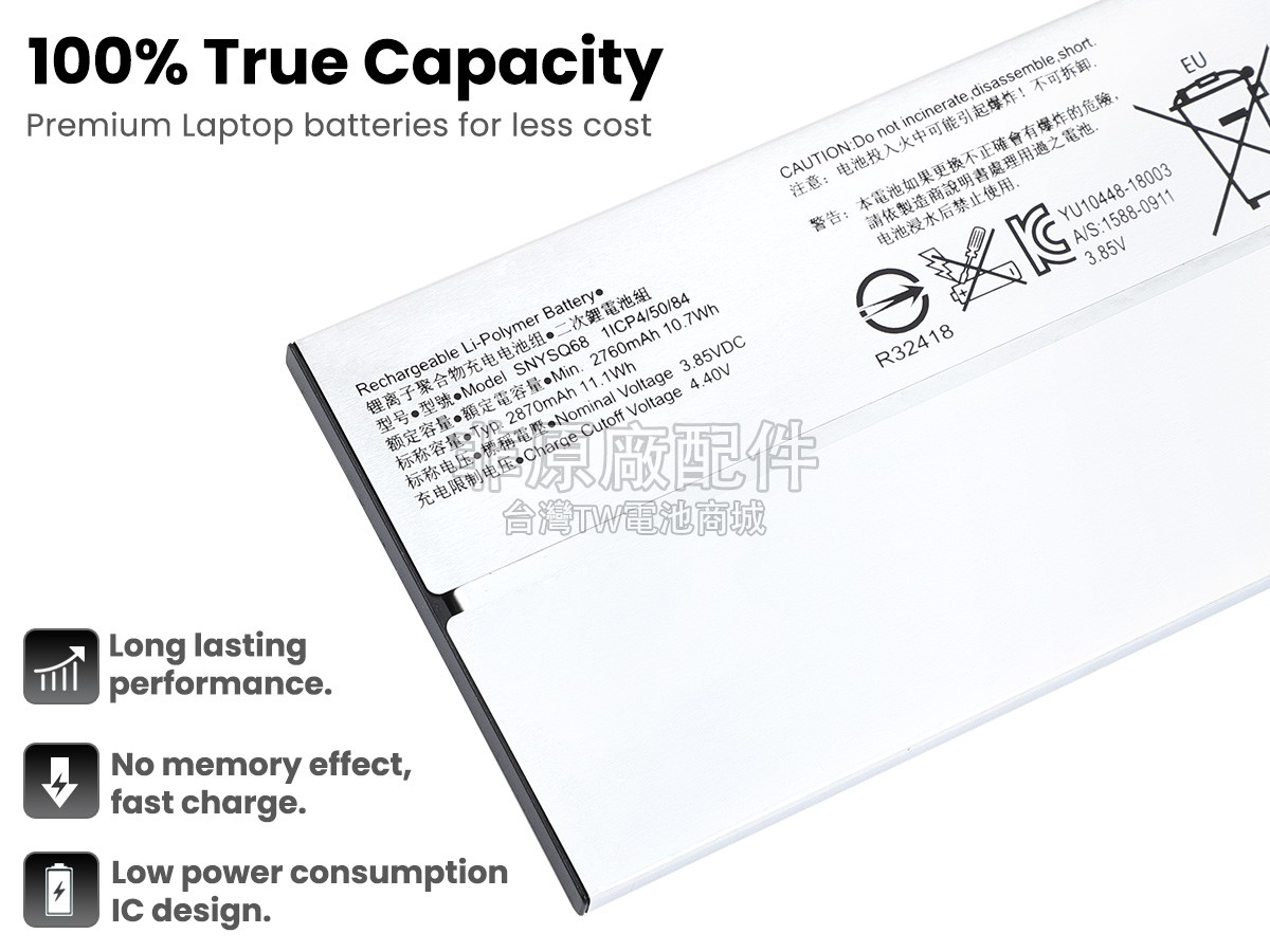 TW電池商城的電池和原始品牌商一樣使用A+級電芯和頂級智能芯片製造而成。但是我們定制自己的電池外殼并降低了品牌所需要的附加成本,這就是為什麼顧客可以以更低的價格購買到原廠品質的替代電池的原因。
