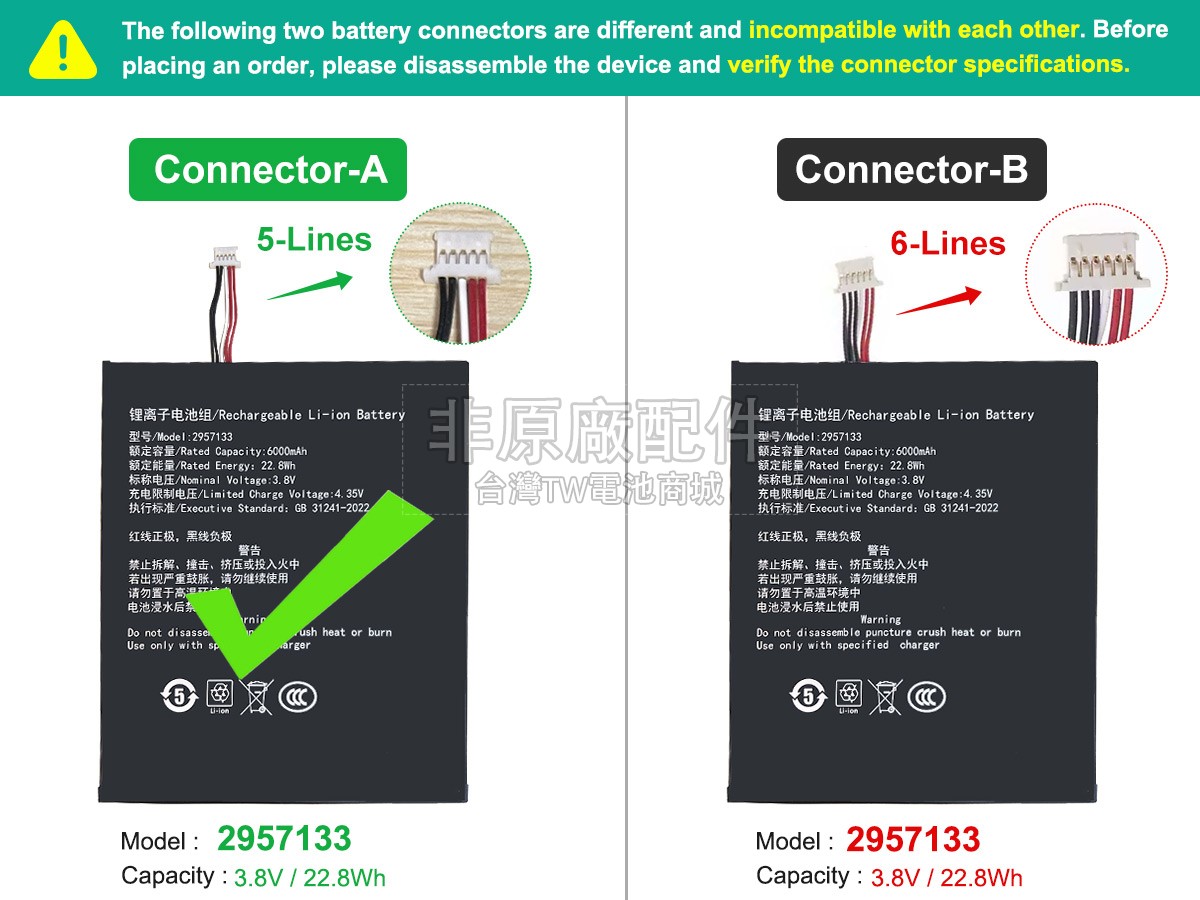 1. 確定自己需要Teclast 2957133電池,為避免出錯,可聯絡我們或訂購時填寫設備的型號便於我們判斷您是否購買了正確的電池;