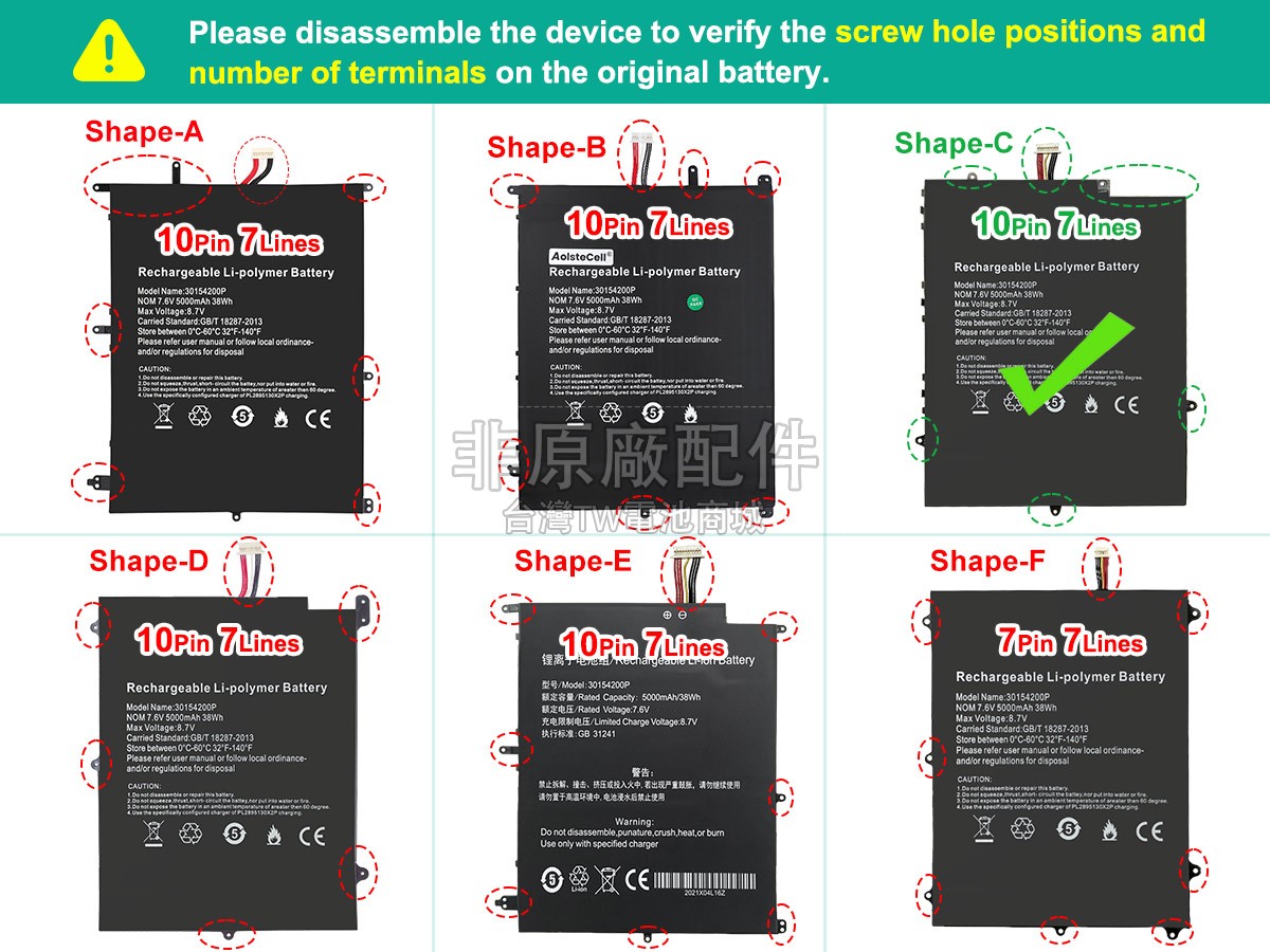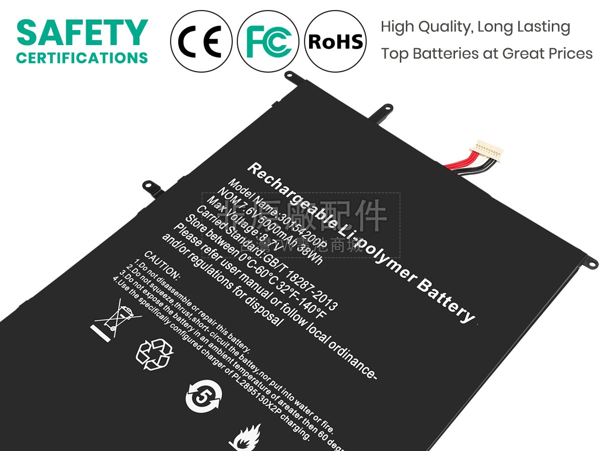 台灣TW電池商城售賣的所有電池均為100%真實容量,我們絕不會在參數上造假。對於製造商提供的每一款電池,我們都會安排技術人員進行參數測試,以確保我們售賣的電池都符合各種認證的要求、100%安全和100%兼容對應的筆記型電腦。極少數情況下,電池參數表上的容量會比電池實物圖上的容量低,這是因為我們檢測時發現製造商給出的電池容量偏高,與電池實際容量不符。於是我們會把電池的實際容量準確地填寫在參數表上,讓顧客直接看到電池的真實容量!這款Teclast F7 PLUS電池和原廠有什麼區別?