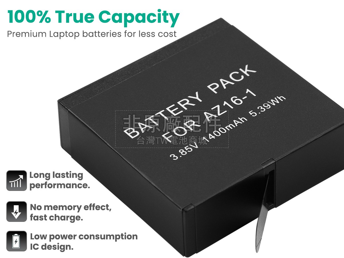 台灣TW電池商城售賣的所有電池均為100%真實容量,我們絕不會在參數上造假。對於製造商提供的每一款電池,我們都會安排技術人員進行參數測試,以確保我們售賣的電池都符合各種認證的要求、100%安全和100%兼容。極少數情況下,電池參數表上的容量會比電池實物圖上的容量低,這是因為我們檢測時發現製造商給出的電池容量偏高,與電池實際容量不符。於是我們會把電池的實際容量準確地填寫在參數表上,讓顧客直接看到電池的真實容量!這款Xiaomi YI AZ16-1-1電池和原廠有什麼區別?