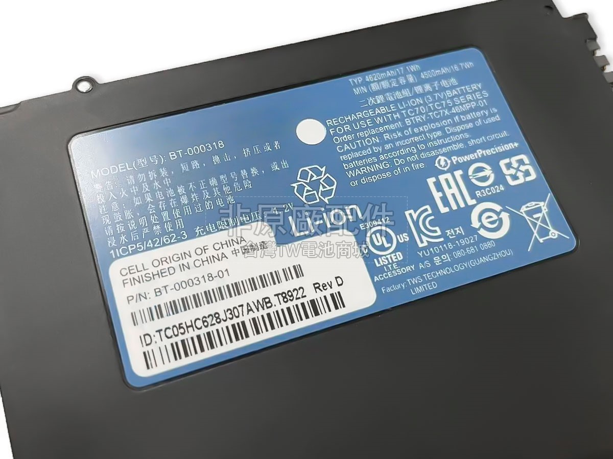 除了使用好的材料外,TW電池商城還以更高的行業標準檢測產品,目前我們的Zebra BT-000318-01電池已經通過日本PSE強制認證、歐盟RoHS環保認證、CE安全認證、美國FCC認證和MSDS化學品安全認證。